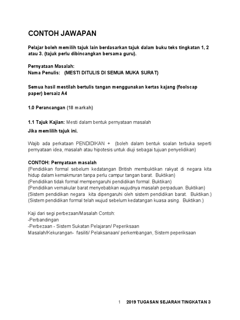 Membina pernyataan masalah yang sesuai 3. Contoh jawapan tugasan sejarah pt3 2018 kerja kursus sejarah pt3 2018.